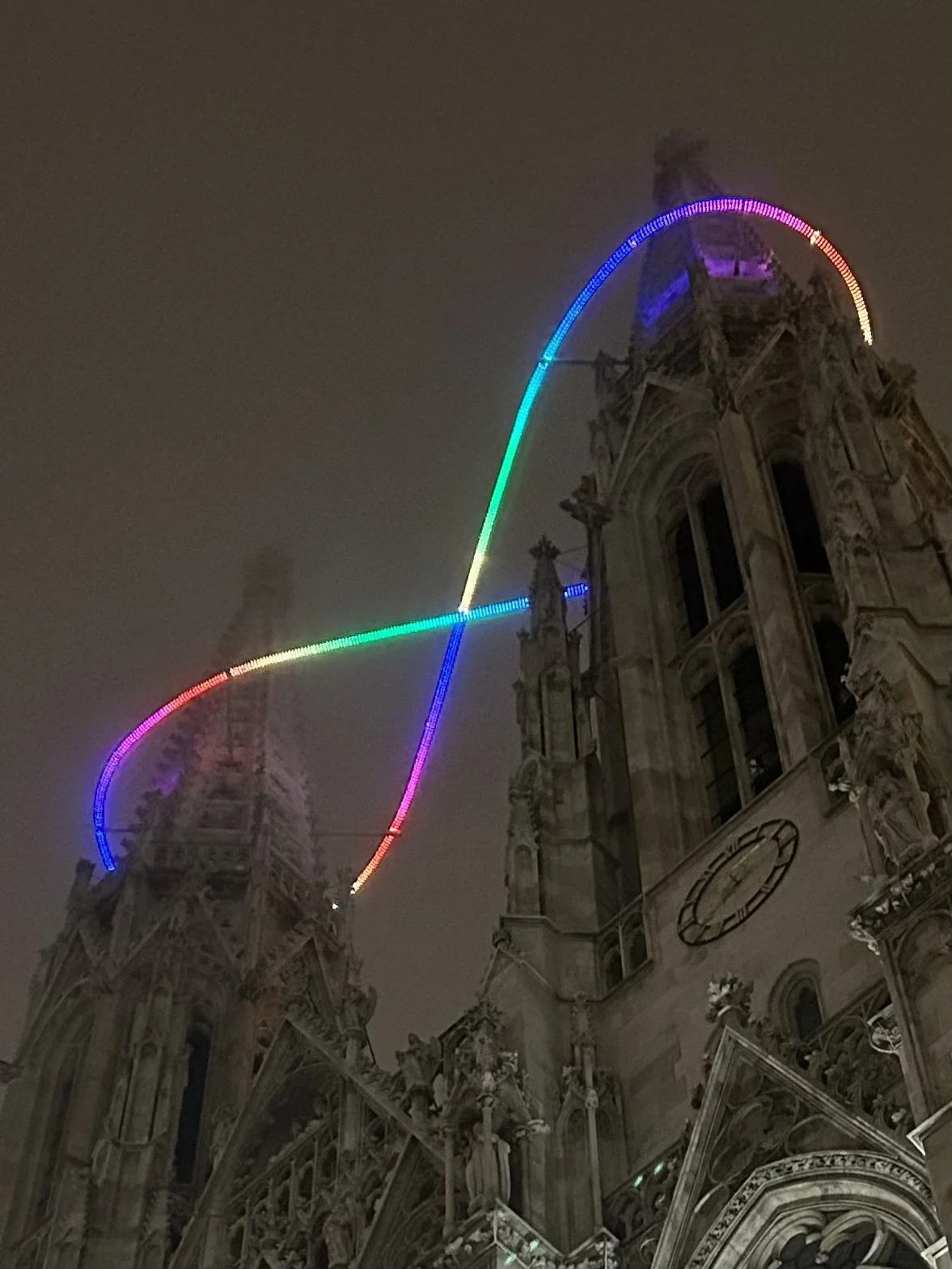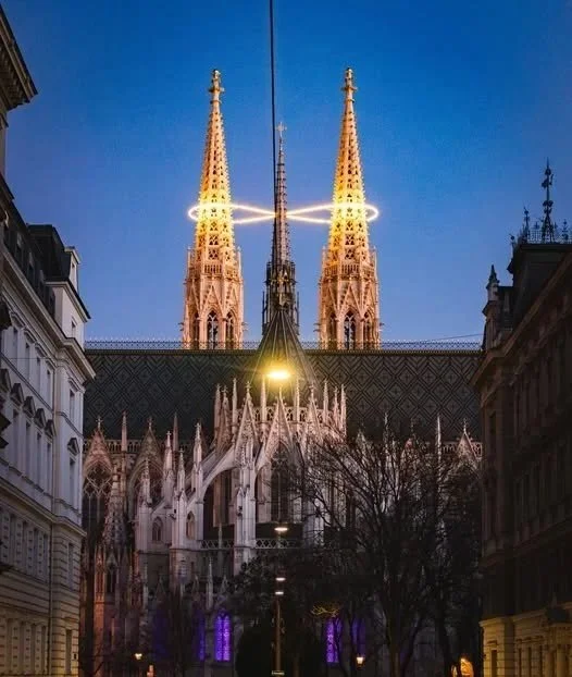 The installation is gloriously luminescent, and it has done the seemingly impossible. You have these two magnificent spires growing out of the Votive Church, pointing towards the heavens, parallel with each other, with no chance of them ever meeting. And what does the artist do? She creates this link between them. It's an incredible reminder that, as Thanner says, “We are all connected here.”